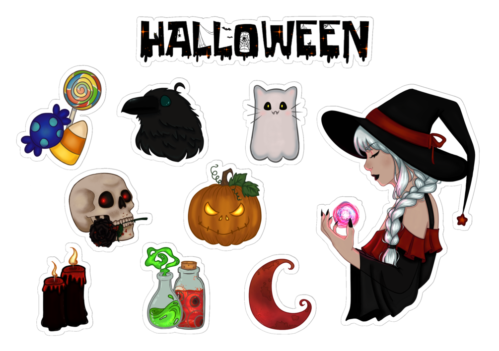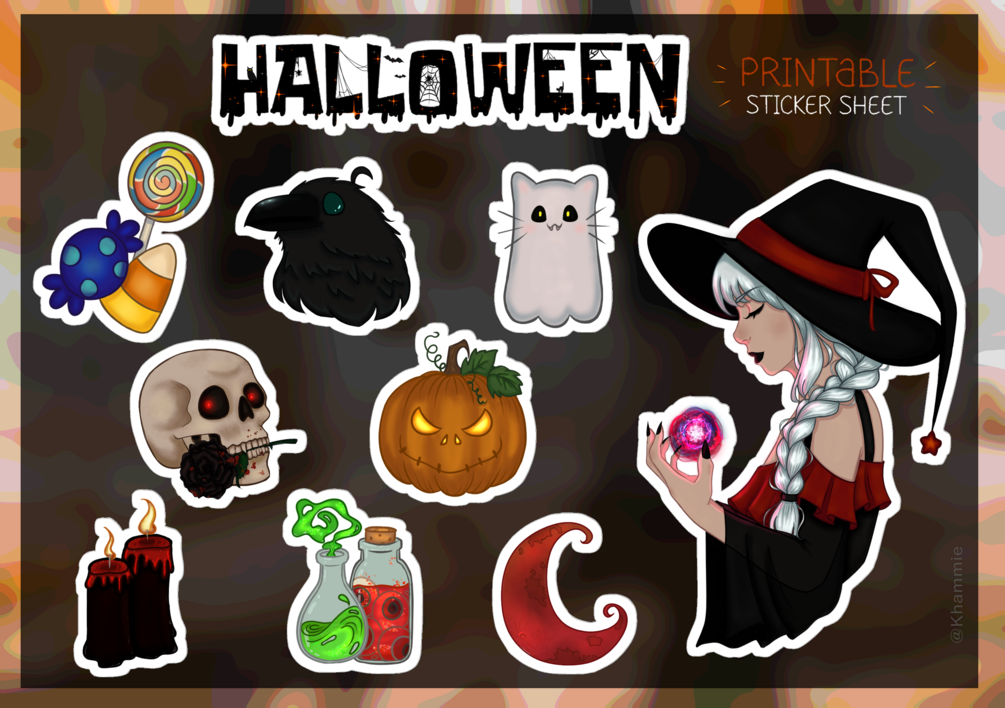 A5 digital sticker sheet . Contains 10 unique Halloween themed stickers, designed with lots of love and a touch of despair. Includes guidelines for easy cutting.